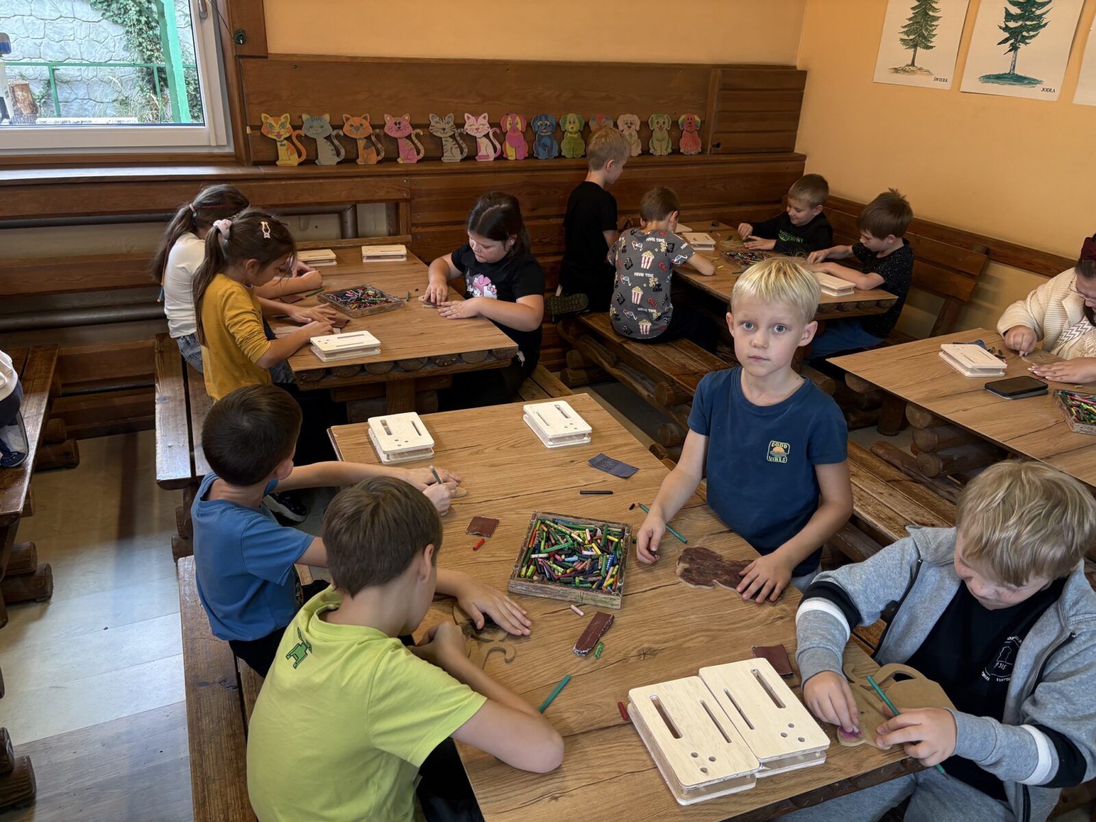 i dowiedziały się, jak powstają drewniane przedmioty. Odwiedziły starą pracownię stolarską oraz wzięły udział w pokazie pracy maszyn stolarskich. Podczas warsztatów wykonały piękne organizery na biurko. Na koniec piekły kiełbaski i bawiły się na świeżym powietrzu.